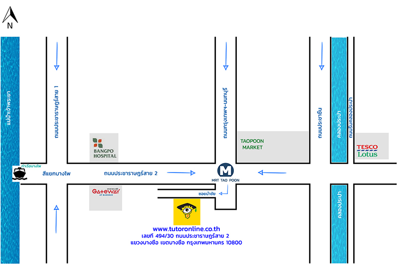 Address wayเลขที่ 494/30 ถนนประชาราษฎร์สาย 2 แขวงบางซื่อ เขตบางซื่อ กรุงเทพมหานคร 10800 ใต้สถานีรถไฟฟ้าเตาปูน ทางออกหมายเลข 1 Contact infoMobile: (065)-961-9694 Mail: info@tutoronline.co.th Work timerMonday - Friday: 09:00 - 20:00 Sunday & Saturday: 10:30 - 22:00 Admin : online 07:00 - 24:00 ท่านสามารถกรอกแบบฟอร์มนี้ เพื่อเป็นอีกช่องทางสำหรับการติดต่อสื่อสาร
